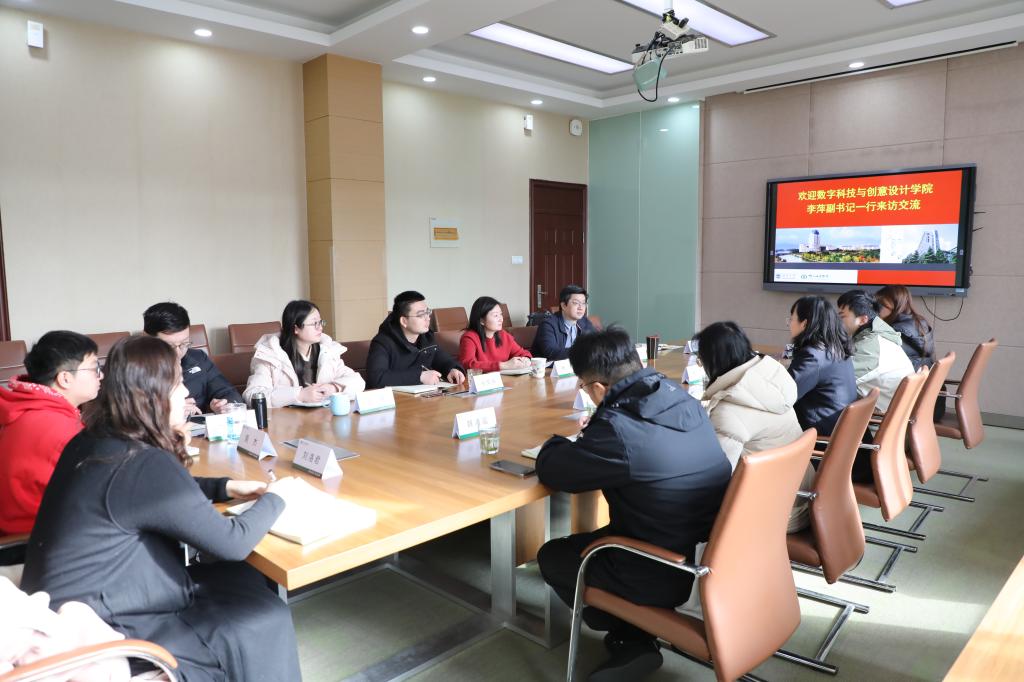 1月7日上午,数字科技与创意设计学院党委副书记兼副院长李萍一行莅临我院交流学生工作。3044am永利集团3044noc党委副书记兼副院长林丹,分团委书记周春江及全体辅导员参加调研交流。
